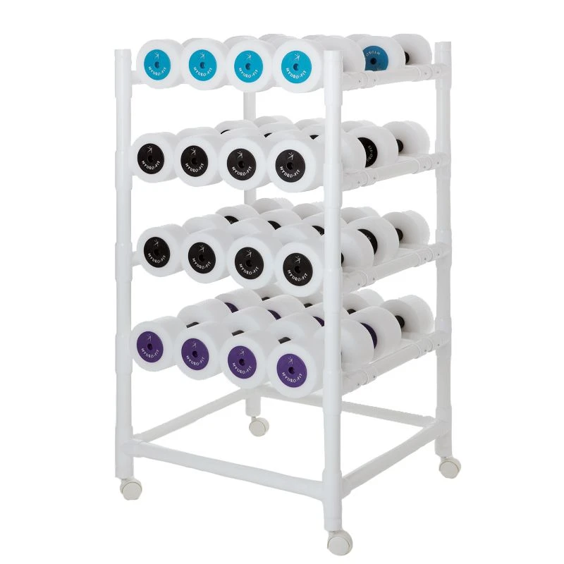 Hydro-Fit’s lightweight and portable Hand Buoy Storage System 24 is versatile, convenient and cost effective. Promote the longevity of your equipment by keeping it off the pool deck and organized for easy rinsing and quick drying. Hydro-Fit’s Hand Buoy System 24 comes with 24 pairs of premium quality Regular size HYDRO-FIT Hand Buoys. 54″ high x 27″ deep x 42″ wide. Rack ships partially assembled. Proudly Made In the USA.