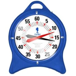Kiefer 15″ Convertible Swimming Pace Clock is a personal swimming pace clock just for your own lane! This smaller clock (22″ h x 18″ w x 8” d), comes with a comfortable handle at the top for portability. Large, easy to read 15″ face with protective lens, contrasting red and black markings and hands allow for optimal visibility, and start/stop button on the side. This clock also comes with a power adapter so you can convert it to run on 110V or use the C-size battery included with the clock. The Minute hand is re-positioned through rear panel. Sturdy base keeps it upright.