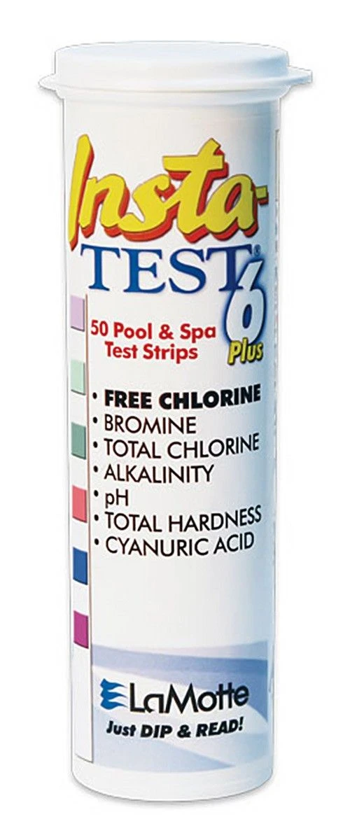 - Free Chlorine 0-10 ppm, Total Chlorine 0-10 ppm (or Bromine 0-20 ppm), pH 6.2-8.4, Alkalinity 0-240 ppm, Total Hardness 50-800 ppm, and Cyanuric Acid 0-250 ppm. Available in 50 strip vials and packaged in 12, 24, and 100 packs.