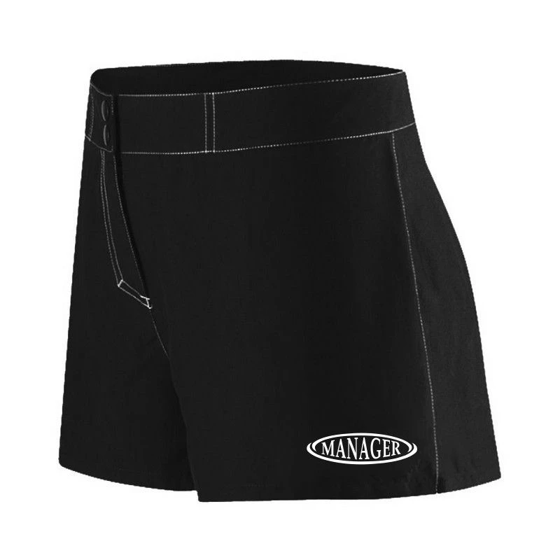 Our Manager Board Short for women showcases 94% Polyester / 6% Spandex Construction, for lightweight comfort and accelerated dry time. Engineered for lifeguards, the Female Manager Short is a perfect choice for the pool or beach and offers enhanced protection from both sun and chlorine. Featuring a Manager Logo for increased visibility, our female Board Short separates you from the crowd and authenticates your role. A drawstring waist allows for a customized fit while a side pocket treatment provides small storage. Safety’s first, but style matters. With one convenient storage pocket and a comfortable fit, this Short is perfect for all kinds of water activities.